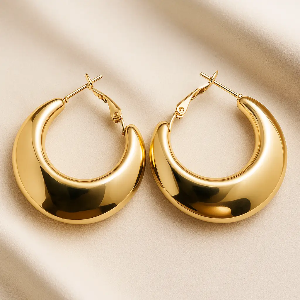 Shopyzz Gold Plated Round Hoop Earrings with a bold, smooth finish. Lightweight, stylish, and versatile for daily wear or elegant occasions.
